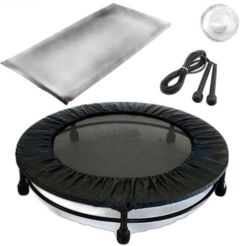 Cama elástica mini jump + colchonete + corda + capa Detalhes do produto Mini jump profissional 32 molas com aro de reforço - cheers O jump profissional - cama elástica trampolim é ideal para o uso em academias, condomínios e residências, além de queimar calorias de forma eficiente. Confeccionado em tubo redondo de aço com aro de reforço, possui pintura em epóxi e tem os pé fixos . São 32 molas para você manter o corpo em forma de uma maneira divertida e saudável. As molas são fixadas á tela por 16 suportes de aço. Pés em pvc antiderrapantes removíveis que se encaixam. O colchonete profissional 90 x 45 x 2 cm é ideal para ter mais conforto na hora de fazer seus exercícios, praticar yoga, pilates ou qualquer exercício funcional. Ele é super prático, fácil de guardar, e é fabricado em espuma de 20 mm com densidade d16, sendo confortável na medida certa. No exterior, é revestido em napa lavável e impermeável, o que facilita quando houver necessidade de higienização e no excesso de suor na prática de exercícios. Você vai se sentir mais confortável para fazer abdominais e outras atividades físicas, além de seu uso ser indispensável para proteger a coluna e evitar lesões. Ações e benefícios: - confortável com enchimento em espuma 20mm de densidade d16 - leve e prático para transporte e armazenamento - tecido lavável e impermeável garante durabilidade do produto - ideal para quaisquer exercícios, prática de yoga, pilates e outras atividades Indicações: - prevenir a coluna e o corpo de lesões em exercícios no solo - ideal para ter mais conforto na prática de quaisquer atividades esportivas Dados técnicos: Tamanho: 90 x 45 x 2 cm Marca: fitness store Material: revestimento em napa com enchimento em espuma 30mm de densidade d23 : 3 meses contra defeito de fabricação Cor: preto Indicações Ideal para o uso em academias, condomínios e residências. Indicado para . Kit composto por: - mini jump - capa para mini jump - corda em pvc - colchonete 90x45x2cm Marca: Não Informado