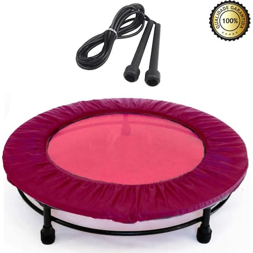 Cama Elástica Mini Jump Profissional Rosa + Capa Rosa +corda O Jump Profissional - Cama Elástica Trampolim é ideal para o uso em academias, condomínios e residências, além de queimar calorias de forma eficiente. Confeccionado em tubo redondo de aço Com Aro de Reforço, possui pintura em epóxi e tem os pés Fixos. São 32 molas para você manter o corpo em forma de uma maneira divertida e saudável. As molas são fixadas a tela por 16 suportes de aço. Pés em PVC antiderrapantes removíveis que se encaixam. AÇÕES E BENEFÍCIOS: É uma forma divertida de queimar calorias, e além de ser um ótimo exercício aeróbico, também fortalece pernas e glúteos. INDICAÇÕES: Ideal para o uso em academias, condomínios e residências. Indicado para . Kit composto por: - Mini jump rosa - Capa de Jump Rosa - Corda de pular em PVC