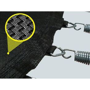 Lona de salto em polipropileno com proteção UV, sem emendas e com referência no centro, facilitando a montagem e utilização do produto.
