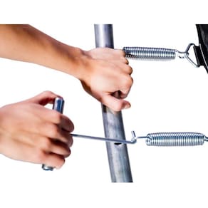 Lona de salto em polipropileno com proteção UV, sem emendas e com referência no centro, facilitando a montagem e utilização do produto.