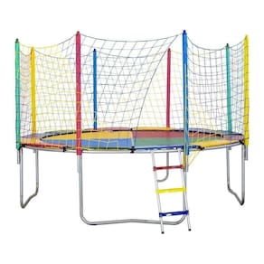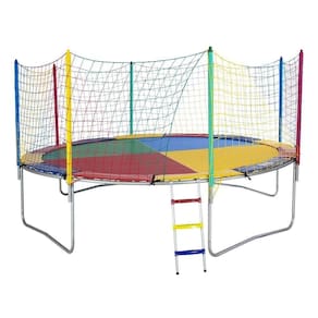 Uma Cama Elástica Completa, com Rede de Proteção Colorida (feita em malha 11) e Protetor de Molas Colorido, feito com espuma de alta densidade para evitar que a criança afunde o pé enquanto está brincando e pulando, além de contar com um revestimento em bagum, um plástico laminado de PVC impermeável com uma fina tela de poliéster, maleável e resistente.