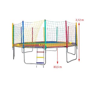 O Trampolim 4,27m 6p c/ Lona Quadricolor Nacional da PapiBrink possui 6 (seis) pés em formato de W, que garantem estabilidade ao produto. Um de seus diferenciais é sua estrutura feita em aço galvanizado a fogo (por dentro e por fora), com espessura 1,55 mm ou chapa 16, que não enferruja com facilidade e possui alta resistência.