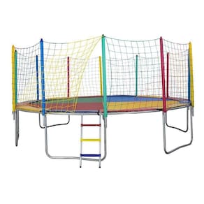 Uma Cama Elástica Completa, com Rede de Proteção Colorida (feita em malha 11) e Protetor de Molas Colorido, feito com espuma de alta densidade para evitar que a criança afunde o pé enquanto está brincando e pulando, além de contar com um revestimento em bagum, um plástico laminado de PVC impermeável com uma fina tela de poliéster, maleável e resistente.
