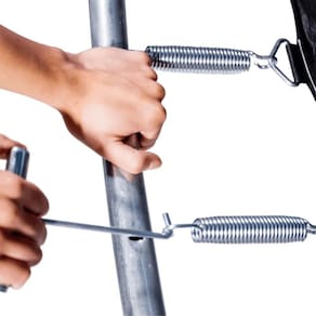A Cama Elástica Reforçada 4,27 metros PapiBrink Nacional vem com 72 Molas Galvanizadas, ao invés dos frágeis elásticos utilizados em alguns modelos importados, aumentando a durabilidade, a segurança e a impulsão.