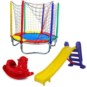POR FAVOR, LEIA A DESCRIÇÃO COMPLETA!!!CAMA ELÁSTICA NACIONAL REDONDAMEDIDAS (VALORES APROXIMADOS):- Diâmetro total: 1,40m- Diâmetro lona de salto (gancho a gancho): 1,04m- Altura total: 1,58m- Altura do chão a lona: 40cmESPECIFICAÇÕES:- Estrutura em aço galvanizado;- Acessórios com proteção UV;- Sistema de impulsão por 24 molas;- 3 pés em formato de U;- Rede de proteção em polipropileno multicolorida;- Sistema de montagem do trampolim por encaixe (fácil de montar);- Suporta até 30 kg;- Lona de salto; (A cor varia de acordo com a disponibilidade do estoque, não é possível escolher a cor da lona);- Protetor de Molas;- GARANTIA DE FÁBRICA: 90 DIAS!!!- IMAGEM MERAMENTE ILUSTRATIVA, A COR VARIA DE ACORDO COM DISPONIBILIDADE EM ESTOQUE.Escorregador Médio-Degrau; 3-Material; Plástico rígido-Comprimento da rampa; 1,40m-Largura da rampa; 30 cm-Altura rampa; 73 cm-Idade recomendada; 1 a 7 anos-IMAGEM MERAMENTE ILUSTRATIVA, A COR VARIA DE ACORDO COM DISPONIBILIDADE.Gangorra 1 Lugar -Lugares; 01-Material; Plástico rigído- Peso: 2,3Kg-Comprimento: 84 cm-Largura: 27 cm-Altura: 42 cm-Apoio para os Pés: Sim-IMAGEM MERAMENTE ILUSTRATIVA, A COR VARIA DE ACORDO COM DISPONIBILIDADE DE ESTOQUE Marca: ROTOPLAY BRINQUEDOS