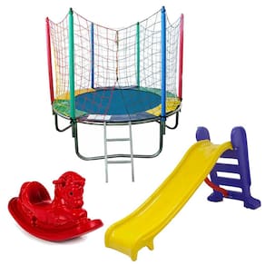 POR FAVOR, LEIA A DESCRIÇÃO COMPLETA!!!CAMA ELÁSTICA NACIONAL REDONDAMEDIDAS (VALORES APROXIMADOS):- Diâmetro total: 1,83m- Diâmetro lona de salto (gancho a gancho): 1,46m- Altura total: 1,68m- Altura do chão a lona: 50cmESPECIFICAÇÕES:- Estrutura em aço galvanizado;- Acessórios com proteção UV;- Sistema de impulsão por 30 molas;- 3 pés em formato de U;- Rede de proteção em polipropileno multicolorida;- Sistema de montagem do trampolim por encaixe (fácil de montar);- Suporta até 60 kg;- Lona de salto; (A cor varia de acordo com a disponibilidade do estoque, não é possível escolher a cor da lona);- Protetor de Molas;- GARANTIA DE FÁBRICA: 90 DIAS!!!- IMAGEM MERAMENTE ILUSTRATIVA, A COR VARIA DE ACORDO COM DISPONIBILIDADE EM ESTOQUE.Escorregador Médio-Degrau; 3-Material; Plástico rígido-Comprimento da rampa; 1,40m-Largura da rampa; 30 cm-Altura rampa; 73 cm-Idade recomendada; 1 a 7 anos-IMAGEM MERAMENTE ILUSTRATIVA, A COR VARIA DE ACORDO COM DISPONIBILIDADE.Gangorra 1 Lugar -Lugares; 01-Material; Plástico rigído- Peso: 2,3Kg-Comprimento: 84 cm-Largura: 27 cm-Altura: 42 cm-Apoio para os Pés: Sim-IMAGEM MERAMENTE ILUSTRATIVA, A COR VARIA DE ACORDO COM DISPONIBILIDADE DE ESTOQUE Marca: ROTOPLAY BRINQUEDOS