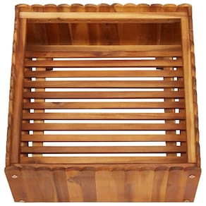 O plantador tem um design rústico e discreto e adicionará um toque de cor natural ao seu espaço ao ar livre. A plantadeira é feita de madeira de acácia sólida e robusta, o que a torna resistente às intempéries e adequada para uso externo. O fundo da plantadeira é ripado, o que mantém o solo dentro e permite que o excesso de água