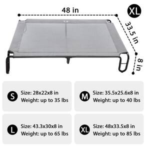 - Dimensões da cama extra grande para cães: a cama elevada pettycare mede 122 x 85 x 20 cm. Serve para até 38,6 kg. O design off-ground de 20 cm promove maior fluxo de ar em todos os lados da cama elevada para cães, o que ajuda a manter seu animal de estimação fresco e cria áreas de baixo impacto nos pontos de pressão e articulações, especialmente em dias chuvosos ou quentes.