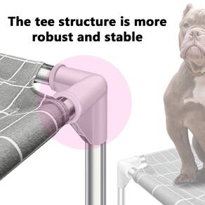 - ?Cama para animais de estimação com tubo de aço inoxidável?A cama externa para animais de estimação é feita de aço inoxidável e tem melhor capacidade de carga. O tubo de aço inoxidável não tem revestimento de tinta, então não há necessidade de se preocupar com descascar ou desbotar, o que melhora muito a vida útil da nossa cama de cachorro.