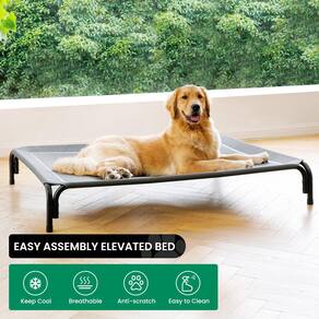 - ?Garante que o cão permaneça seco e fresco?A cama elevada para cães oferece um design fora do solo que promove a circulação de ar. Isso garante que seu cão permaneça seco e fresco em todas as estações. Além disso, a estrutura elevada da cama do berço torna conveniente limpar a área embaixo dela. Nossa cama elevada para cães de todas as idades, de filhotes a idosos, a altura de 20 cm é perfeitamente adequada para qualquer canino.
