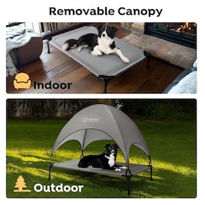 - Toldo de sombra recarregável e impermeável: esta cama para cães bloqueia efetivamente a luz solar e a chuva, perfeita para acampar. Com uma cobertura de sombra removível, a cama elevada para cães oferece ao seu animal de estimação um lugar confortável para relaxar, seja em ambientes internos ou externos