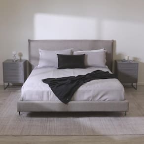 Cabeceira e box estofado em espuma D-16 revestida em tecido linho.