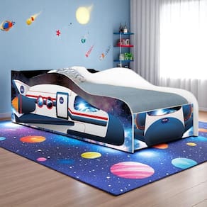 A Cama conta com bordas arredondadas e laterais que funcionam como grade de proteção.