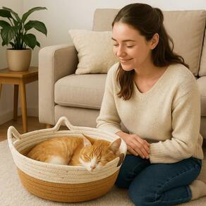 Cama Gato Arranhador Ninho Cestinho Caminha Rasqueável Pet Cama Gato Arranhador Ninho Cestinho Caminha Rasqueável Pet Cama de Gato Cestinho com Orelhinhas - Caminha Arranhador Confortável, Lavável e Resistente Design Divertido para Pets A caminha mais fofa e funcional que o seu gatinho vai amar Com formato redondo e um detalhe encantador de orelhinhas de gato, essa Caminha-Cestinho é perfeita para transformar o espaço do seu pet em um cantinho cheio de conforto, diversão e estilo. Feita com corda de algodão trançada e acabamento em tecido de linho lavável, ela é super resistente, higiênica e confortável. Além de aconchegante, também funciona como um arranhador natural, ideal para o seu gato afiar as garrinhas com segurança, sem danificar móveis da casa. Leve, portátil e decorativa, essa caminha combina com qualquer ambiente e pode ser Utilizado com ou sem almofada. Benefícios do Produto: Design exclusivo com orelhinhas de gato Ideal para gatos de todas as idades Funciona como arranhador natural Confortável, resistente e decorativa Corda de algodão trançada com acabamento em linho Lavável e fácil de higienizar Leve, portátil e versátil Perfeita para descanso e brincadeiras Especificações Técnicas: Cor: Bege Material: Corda de algodão + tecido de linho Altura: 13 cm Diâmetro: 42 cm Circunferência: 1,30 m Conteúdo da Embalagem: 1 Caminha de Gato tipo Cestinho com Orelhinhas Marca: Não Informado