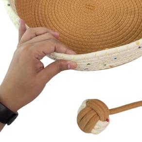 Com 4 fios de corda de algodão trançados com acabamento em tecido lavável, essa caminha é super resistente e ideal para o seu gatinho rasquear e descansar. Funciona também como um arranhador natural!