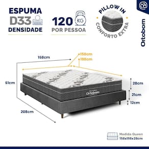 - Dimensões do produto (largura x comprimento x altura): 168x208x32cm Ideal para Colchão Queen: 158x198