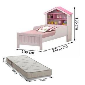 Cama Infantil Casa Princesa Rosa e Branca com Telhadinho + Colchão Solteiro – 100% MDF