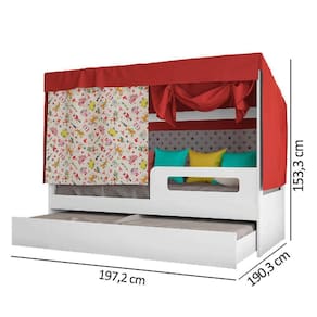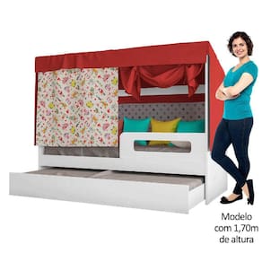 Cama Infantil Circus Tenda com Cama Auxiliar Pura Magia Branco. A brincadeira que toda criança faz agora é possível com a Cama Circus Tenda Diversão. Além de ser uma super cama, ainda possui uma barraca que permite a criança brincar de acampar no conforto do seu quarto. Os tecidos frontais são removíveis, o que possibilita abrir e fechar a "cabaninha" com facilidade. A cama auxiliar é um acessório indispensável para que sua pequena possa receber as amiguinhas em casa para brincar. Ean: 7909903236437