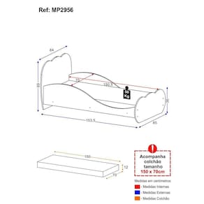 Acabamento: Pintura UV | Cor: Branco | Material: MDF | Referência do Modelo: MP2956 | Coleção: Nuvem | Sistema de Montagem: O produto acompanha manual de montagem juntamente com kit ferragem. O produto será entregue desmontado e não disponibilizamos o serviço de montagem. | Peso Suportado: 50 kg | Instruções de Cuidado: Limpar com pano seco para retirar o pó. Não utilizar produtos químicos ou abrasivos a limpeza. Não aplicar lustra móveis. | Largura Montado: 154 | Tamanho (L x A x P): 154 x 69 x 85 | Beliche: Não | Produto: Cama | RBN: 17100649011 | Tipo de Cama: N/A | Peso do Produto: 28 | Produto Composto Por: 1 Minicama, 1 Colchão, Manual de Montagem e Kit Ferragem. | Altura Montado: 69 | Acompanha Colchão: Sim | Profundidade Montado: 85 | Tonalidade: Branco | Requer Montagem: Sim | Garantia do Fabricante: 3 | Com gaveteiro: Não | Fabricante: Multimóveis | Tamanho da Cama: Solteiro | Altura (cm): 69 cm | Largura (cm): 154 cm | Comprimento (cm): 85 cm | Classificação da Cama: Infantil | Modelo de Cama: Mini Cama | Peso máximo suportado por cama: 50 kg | Padrão da Cama: Padrão | Altura do Produto com Embalagem: 19.00 | Largura do Produto com Embalagem: 73.00 | Comprimento do Produto com Embalagem: 156.00 | Peso do Produto com Embalagem: 28.00 | Nome do Produto no Fornecedor: Cama Infantil com Colchão Incluso 70 x 150 cm 100% MDF Algodão Doce Multimóveis Branca | Estado de Origem: RS | Descrição do Tamanho: (L x A x P): 154 cm x 69 cm x 85 cm | Produto precisa de Montagem?: Sim, sugerimos a contratação do nosso serviço de montagem (para os CEPs em que o serviço está disponível) ou de algum profissional experiente de sua preferência | Tempo de Garantia: 3 meses | Destaque 1: Produzido em MDF: maior durabilidade e resistência. | Destaque 2: Tamanho do Produto Montado (L x A X P): 154 cm x 69 cm x 85 cm | Destaque 3: Acompanha colchão. | Destaque 4: Peso Suportado: 50 kg. | Destaque 5: 90 dias de garantia legal para vícios ou defeitos de fabricação. | Peso (kg): 28 kg | FloorToTop (cm): 69 Centimetros | SideToSide (cm): 154 Centimetros | HeadToToe (cm): 85 Centimetros | Tipo de produto: bed | Marca: Multimóveis