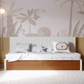 Materiais: MDF e Madeira | Comprimento x Largura: 190 cm x 90 cm | Peso: 95 KG | Com Gavetas: Sim | Peso Máximo Suportado Por Cama: 100 KG | Altura: 31 cm | Requer Montagem: Sim | Cor: mel Branco