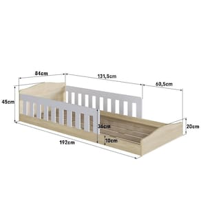 Marca: Completa Móveis | Material: MDP | Acabamento: Fosco | Tamanho da Cama: Solteiro | Modelo: Cama de Solteiro Montessoriana | Comprimento (cm): 192 | Largura (cm): 84 | Altura (cm): 45 | Peso do Produto (Kg): 22,40 | Quantidade de Volume: 2 | Peso Suportado (Kg): 80 | Material do Estrado: Suportes dos lastros em madeira maciça e lastros em MDF | Altura do Estrado até o Chão (cm): 0 | Colchão Indicado (LxPxA cm): 188x78x12 | Acompanha Colchão: Não | Com Esacada: Não | Possui Rodízios: Não | Necessita Montagem: Sim | Nível de Dificuldade da Montagem: Médio | Sistema de Montagem: Sistema de montagem via parafusos, cavilhas, pregos, sistema minifix, parafusos união e porcas elípticas | Duração da Garantia: 6 Meses | Tipo de Garantia: Garantia do Fabricante | Dimensão (AxLxC cm): 45x84x192 | País de Origem: | Quantidade de Item: 1 | Baterias Necessárias: Não | Certificação de Teste Externo: Não Possui | Componentes Incluídos: Manual de Instalação | da Peça: ENC002 | Principal Característica do Produto 01: Cama de Solteiro | Principal Característica do Produto 02: Cama Infantil Montessoriana | Principal Característica do Produto 03: Cama de Chão | Frágil: Não | Inclui Manual de Montagem: Sim | Tipo de Cama: Cama Infantil de Chão Montessoriana | Cor: Carvalho Araguaia