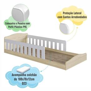 A Cama Infantil de Chão Montessoriana de Solteiro Menino Menina com Colchão e Grade Proteção da Completa Móveis traz o melhor do estilo montessori para o quarto do seu filho. Um conceito lúdico para estimular a autonomia e aperfeiçoar o potencial criativo das crianças desde a primeira infância, trazendo leveza e um toque diferenciado no design.