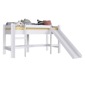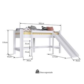 Apresentando a Cama Infantil Elevada com Escorregador Branca sem Cortina da Completa Móveis! Esta incrível cama foi projetada para proporcionar conforto e diversão para as crianças. Com 02 degraus e um escorregador, o acesso à cama é seguro e divertido. Além disso, a parte inferior da cama oferece um espaço perfeito para brincadeiras e diversão de várias maneiras.