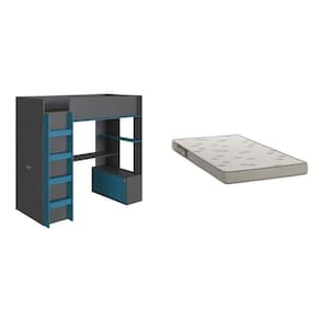 1x Cama Elevada Multifuncional com Armário e Escrivaninha Grafite/Azul Secreto Largura: 196,2 cm Altura: 183 cm Peso: 143 kg Profundidade: 95,8 cm Necessita Montagem: Sim