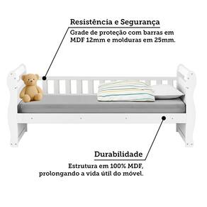 Características: Acabamento em pintura UV Atóxica Bordas arredondadas e laqueadas Cama suporta até 90kg Estrutura 100 em MDF 12mm Grade e cabeceiras MDF 25 e 12 mm e as barras centrais em MDF 25mm Não acompanha colchão Material do estrado madeira Tamanho do colchão indicado -LxC - cm-: 88 x 188 -Solteiro- Tipo de estrado fixo -altura 36,4cm- Tipo de grades fixas