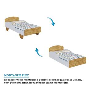 Caracteristicas: Acabamento em pintura UV Atoxica Bordas arredondadas e laqueadas Cama suporta ate 90kg Estrutura 100 em MDF 15mm Nao acompanha colchao Material do estrado madeira Pes em MDF 25mm com 16cm de altura Produto Flex pode ser montada como cama simples ou montessoriana Remova os pes para montagem na opcao montessoriana Tamanho do colchao indicado -LxC - cm-: 88 x 188 -Solteiro- Tipo de estrado fixo -altura 26,7cm- Tipo de grades fixas