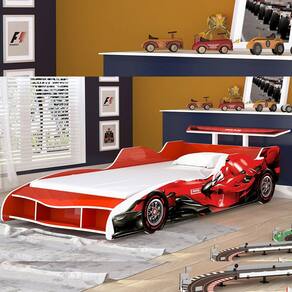 Cama Infantil Gelius 94x217cm Fórmula 1 A Cama F1 agrega beleza ao quarto dos meninos. Ela também proporciona diversão e conforto na hora de brincar. Seu design em formato de carro de corrida é a realização dos meninos em fazer parte de um time de campeões, que convivem com a velocidade. A resistência e segurança também são garantidas, já que esta cama é feita com matéria-prima 100 MDF. Produto com acabamento antirriscos e pintura UV -ultravioleta- que fixa com mais intensidade o brilho nos móveis.
