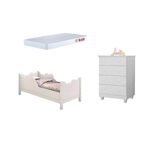 Transforme o quarto dos pequenos em um ambiente encantador, seguro e funcional com o Conjunto Cama Infantil Juvenil Nuvem + Cômoda Lara. A combinação perfeita entre conforto, organização e design moderno, garantindo noites tranquilas e um espaço harmonioso para o dia a dia. Tipo: Cama Juvenil + Cômoda + Colchão Modelo: Nuvem e Lara Cor: Branco Ideal para quem busca praticidade, essa versão acompanha um colchão confortável e de alta qualidade, proporcionando um sono revigorante para a criança desde o primeiro dia. Destaques do Conjunto: Cama Nuvem: Design lúdico em formato de nuvem, laterais de proteção para segurança e estrutura em MDF resistente com pintura atóxica. Cômoda Lara: Moderna e sofisticada, oferece amplo espaço para organização, deixando o ambiente sempre arrumado. Ambiente Aconchegante: A combinação dos móveis cria um quarto harmonioso e cheio de charme. Durabilidade e Segurança: Materiais de alta qualidade que garantem resistência e proteção para os pequenos. DIMENSÕES DO PRODUTO: Cama: Altura: 61cm Largura: 74,5cm Comprimento: 155cm