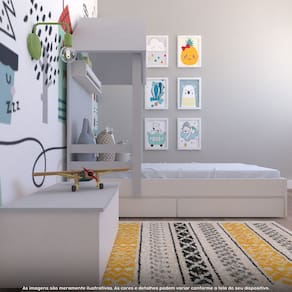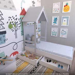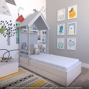 Os Móveis devem ser escolhidos com muito carinho, independente de qual for o ambiente, pois eles fazem parte da rotina do dia a dia do nosso lar ou trabalho. Portanto, na hora de decidir qual modelo, lembre-se: além de ter a ergonomia necessária, a medida ideal, um design incrível, eles também devem cumprir suas funções com desempenho total, e na hora da escolha das cores, elas devem combinar com seu estilo e personalidade. Essa Cama Infantil Lara possui um design encantador, que permite trazer outros elementos decorativos para compor o ambiente. Acabamento da Gaveta: Melamínico Acabamento da Prateleira: Melamínico Acompanha Cabeceira: Sim Acompanha Cama Auxiliar: Não Acompanha Colchão: Não Acompanha Dossel: Não Acompanha Escorregador: Não Acompanha Grade de Proteção: Sim Acompanha Móbile: Não Acompanha Suporte para Mosquiteiro: Não Altura do Estrado até o Chão: 25 cm Ambiente Principal: Quarto Infantil codigo_ean: 7900288107022 Complexidade da Montagem: Alta: deve ser montado por um montador especializado Cor: Branco/Cinza Cristal Cor do Produto: Branco/Cinza Cristal Escala de Brilho: Fosco Escala de Brilho da Gaveta: Fosco Escala de Brilho da Prateleira: Fosco Extensível: Não Gaveta com Chave: Não Itens Inclusos: 1 Cama, Kit Ferragens e Manual de Montagem Linha ou Coleção: Zoe Manual de Montagem e Instalação: https://product-hub-prd.madeiramadeira.com.br/983843/documents/f9272e62-62cf-4101-a105-544bbbd5e2482778418146217435410072003.pdf Marca: Bramov Móveis Material da Gaveta: MDF/MDP Material da Prateleira: MDF/MDP Material do Estrado: MDP Material Principal: MDF/MDP modular: Não Necessita Montagem: Sim Origem do Produto: Nacional Permite a Utilização de Cama Auxiliar: Não Peso: 39 kg Peso Máximo por Gaveta: 5 kg Peso Máximo por Prateleira: 2 kg Possui Baú: Não Possui Casinha: Sim Possui Escrivaninha: Não Possui Estante: Sim Possui iluminação: Não Possui Pés: Não Possui Portas: Não Possui Telhado: Sim Recomendações de Uso, Manutenção e Limpeza: Limpeza com pano macio levemente umedecido. Não utilizar produtos abrasivos. Sistema de Montagem: Parafusos, Cavilhas e Minifix. Suporta Até (kg): 80 kg Tamanho da Cama: Infantil Tamanho do Colchão Indicado (L x C): 68 x 148 cm Tipo de Cama: Infantil Tipo de Colchão: Infantil Tipo de Corrediça da Gaveta: Metálica Telescópica Tipo de Estrado: Removível Tipo de Grade de Proteção: Grade Tipo de Puxador da Gaveta: Embutido