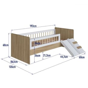 O(a) Cama Infantil Montessoriana Affetto com Escada e Escorregador Aveiro Oak/Branco - Completa Móveis é produzido em MDP na escala de brilho Fosco, e possui um grau de dificuldade de montagem: Médio.