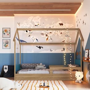 Cama Infantil Montessoriana Aveiro Oak/Azul Secreto - Marrom
