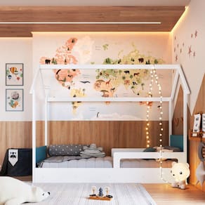 O quarto da sua criança ficará ainda mais charmoso com a nossa Cama Infantil Montessoriana da Completa Móveis. O conceito Montessori traz o melhor do estilo para o quarto de bebê ou infantil. Um conceito lúdico para estimular a autonomia e aperfeiçoar o potencial criativo das crianças desde a 1ª infância. Com grades laterais de proteção e com cantos arredondados, propicia mais segurança pro seu pequeno. Possui ainda duas possibilidades de montagem na altura do estrado (colchão), sendo rente ao chão ou 21,2 cm. acima do chão. Opcional em várias combinações de cores, confira! O produto é entregue desmontado. Acompanha Cabeceira: Sim Acompanha Cama Auxiliar: Não Acompanha Colchão: Não Altura do Estrado até o Chão: 20 cm Ambiente Principal: Quarto Infantil codigo_ean: 7909903342732 Complexidade da Montagem: Baixa: pode ser montado por uma pessoa sozinha Cor: Branco/Azul Secreto Cor do Produto: Branco/Azul Secreto Escala de Brilho: Fosco Itens Inclusos: 1 Cama, Manual de Montagem e Kit Ferragens Linha ou Coleção: Linha Infanto Manual de Montagem e Instalação: https://product-hub-prd.madeiramadeira.com.br/856216/documents/13cb3cf3-c0e9-470b-9403-8016c652f97778996714694137899671469420.pdf Material do Estrado: MDF Material Principal: MDP Necessita Montagem: Sim Origem do Produto: Nacional Permite a Utilização de Cama Auxiliar: Sim Peso: 38,6 kg Possui Baú: Não Possui Gavetas: Não Possui Pés: Não Possui Portas: Não Possui Prateleiras: Não Recomendações de Uso, Manutenção e Limpeza: Use um pano levemente umedecido com água, seguido de pano seco. Não utilize produtos químicos ou abrasivos. Sistema de Montagem: Sistema de montagem via parafusos, cavilhas, sistema minifix, parafusos união e porcas elípticas. Suporta Até (kg): 80 kg Tamanho da Cama: Solteiro Tamanho do Colchão Indicado (L x C): 78cm x 188cm Tipo de Cama: Montessoriana Tipo de Colchão: Solteiro Tipo de Estrado: Fixo