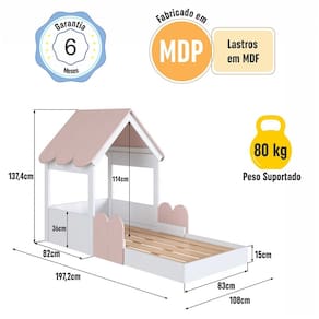 O(a) Cama Infantil Montessoriana Casinha Branco/Rosa Milkshake - Completa Móveis é produzido em MDP na escala de brilho Fosco, e possui um grau de dificuldade de montagem: Médio.