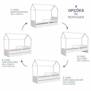Cama Infantil Montessoriana com Cama Auxiliar Branco. O quarto da sua criança ficará ainda mais charmoso com a nossa Cama Infantil Montessoriana da Completa Móveis. O conceito Montessori traz o melhor do estilo para o quarto de bebê ou infantil. Um conceito lúdico para estimular a autonomia e aperfeiçoar o potencial criativo das crianças desde a primeira infância. Com grades laterais de proteção e com cantos arredondados, propicia mais segurança pro seu pequeno. Para completar e tornar o produto, acompanha a cama auxiliar, permitindo que tanto os pais quanto aquele amiguinho possam passar uma noite super legal. Rodízios na cama auxiliar que facilitam sua movimentação. Opcional em várias combinações de cores, confira! O produto é entregue desmontado.