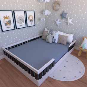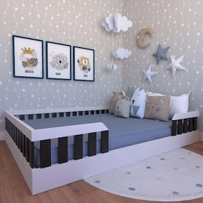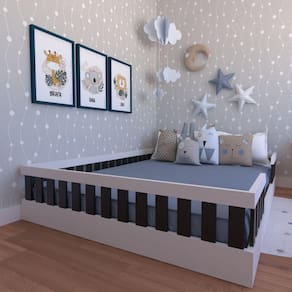 Os Móveis devem ser escolhidos com muito carinho, independente de qual for o ambiente, pois eles fazem parte da rotina do dia a dia do nosso lar ou trabalho. Portanto, na hora de decidir qual modelo, lembre-se: além de ter a ergonomia necessária, a medida ideal, um design incrível, eles também devem cumprir suas funções com desempenho total, e na hora da escolha das cores, elas devem combinar com seu estilo e personalidade. Esse Ambiente Infantil possui um design encantador, que permite trazer outros elementos decorativos para compor o ambiente. Acompanha Cama Auxiliar: Não Acompanha Colchão: Não Acompanha Dossel: Não Acompanha Móbile: Não Acompanha Suporte para Mosquiteiro: Não Altura do Estrado até o Chão: 7 cm Ambiente Principal: Quarto Infantil codigo_ean: 7909903219096 Complexidade da Montagem: Média: pode ser montado por mais de uma pessoa e/ou necessite de maior conhecimento para montagem Cor: Branco/Preto Itens Inclusos: Cama, Kit Ferragens e Manual de Montagem Manual de Montagem e Instalação: https://product-hub-prd.madeiramadeira.com.br/726804/documents/80a7ddbd-caed-4beb-ad21-a470dfbbc5cd925923cam004manual.pdf Material do Estrado: MDP Material Principal: MDF/MDP Necessita Montagem: Sim Origem do Produto: Nacional Permite a Utilização de Cama Auxiliar: Não Peso: 60 kg Possui Baú: Não Possui Gavetas: Não Possui Pés: Não Possui Portas: Não Recomendações de Uso, Manutenção e Limpeza: Limpar apenas com pano macio levemente umedecido. Sistema de Montagem: Parafusos e minifix Suporta Até (kg): 150 kg Tamanho da Cama: Casal Tamanho do Colchão Indicado (L x C): 1,38 x 1,88 Tipo de Cama: Montessoriana Tipo de Colchão: Casal Tipo de Estrado: Removível