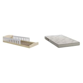 1x Cama de Chão Montessoriana de Solteiro Linha Encanto Carvalho/ Branco Largura: 84 cm Altura: 45 cm Peso: 22,4 kg Profundidade: 192 cm Necessita Montagem: Sim