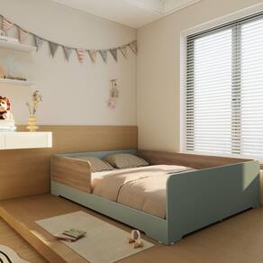 A Cama Montessoriana Mark é perfeita para a fase de transição do berço para a cama, unindo segurança, conforto e autonomia para os pequenos. Com design moderno e acabamento em verti com louro freijó, ela se destaca no quarto infantil com muito charme.