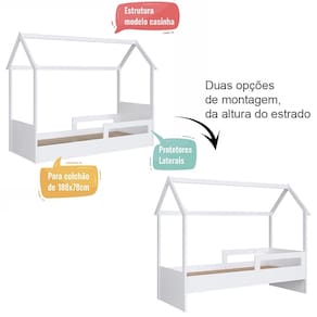 Possui ainda duas possibilidades de montagem na altura do estrado, sendo rente ao chão ou 21,2 cm