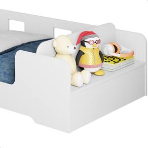Produzida em MDF, conta com bordas arredondadas e grades de proteção, oferecendo muita segurança e noites tranquilas de sono. O design da cama é cuidadosamente pensado para estar ao alcance das crianças, permitindo que elas subam e desçam com facilidade de forma segura. Garantindo uma noite de sono tranquila e revigorante para os pequenos.