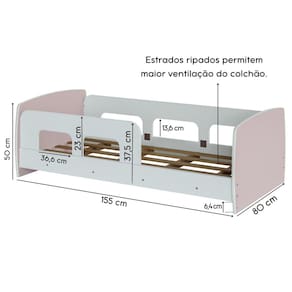 Tamanho compacto: ideal para quartos pequenos ou ambientes compartilhados. Acompanha Cama Auxiliar: Não Acompanha Colchão: Não Altura do Estrado até o Chão: 8 cm Ambiente Principal: Quarto Infantil codigo_ean: 7909903818879 Complexidade da Montagem: Baixa: pode ser montado por uma pessoa sozinha Cor: Branco/Rosa Cor do Produto: Branco/Rosa Escala de Brilho: Fosco Itens Inclusos: 1 Cama Ninho, Kit e Manual de montagem Manual de Montagem e Instalação: https://product-hub-prd.madeiramadeira.com.br/924744/documents/5fd36b49-274d-4c2d-8b7b-f783ac1b262e2156794363217214163296454.pdf Material do Estrado: Eucalipto Material Principal: MDP modular: Não Necessita Montagem: Sim Origem do Produto: Nacional Permite a Utilização de Cama Auxiliar: Não Peso: 21 kg Possui Baú: Não Possui Gavetas: Não Possui Pés: Não Possui Portas: Não Possui Prateleiras: Não Recomendações de Uso, Manutenção e Limpeza: Na limpeza não utilizar produtos químicos e abrasivos, usar apenas um pano umedecido, seguido de pano seco, para garantir a maior durabilidade do móvel. Sistema de Montagem: Cavilhas e parafusos Suporta Até (kg): 120 kg Tamanho do Colchão Indicado (L x C): 150cm x 70cm Tipo de Cama: Montessoriana Tipo de Colchão: Infantil Tipo de Estrado: Fixo