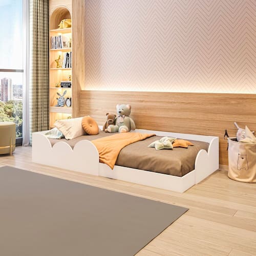 Pensando nisso a DRD Móveis desenvolveu a Cama Infantil Montessoriana Solteiro Cloud, que é a escolha perfeita para decorar o quarto do seu pequeno de forma inovadora, divertida e segura. Sua estrutura é próxima ao chão, permitindo a criança mais autonomia além de estimular o seu desenvolvimento, ideal para colchões de 88x188. Ideal para o quarto dos sonhos! Acabamento dos Pés: BP Acompanha Cabeceira: Não Acompanha Cama Auxiliar: Não Acompanha Colchão: Não Acompanha Escorregador: Não Altura do Estrado até o Chão: 1,5 cm Altura dos Pés: 1,5 cm Altura Máxima dos Pés: 1.5000 Ambiente Principal: Quarto Infantil codigo_ean: 7900288001306 Complexidade da Montagem: Média: pode ser montado por mais de uma pessoa e/ou necessite de maior conhecimento para montagem Cor: Branco Cor do Produto: Branco Cor Flex: Não Escala de Brilho: Semi-Brilho Extensível: Não Informações Complementares: - Fazer uma verificação mensal e realizar o reaperto dos parafusos do produto, caso necessário. - Proibido pular sobre as camas. - O produto destina-se ao uso de uma pessoa por cama sempre. O produto jamais deverá ser utilizado por mais de uma pessoa por cama Itens Inclusos: 1 Cama Infantil + 1 kit de ferragens + 1 manual de montagem Manual de Montagem e Instalação: https://product-hub-prd.madeiramadeira.com.br/965344/documents/5c3ed944-3751-441d-9e2f-0ca908a95f732507277465917301261894222.pdf Marca: DRD Móveis Material dos Pés: Plástico Material Principal: MDP modular: Não Montagem Flex: Não Necessita Montagem: Sim Origem do Produto: Nacional Permite a Utilização de Cama Auxiliar: Não Peso: 24,8 kg Possui Baú: Não Possui Casinha: Não Possui Escrivaninha: Não Possui Estante: Não Possui Gavetas: Não Possui iluminação: Não Possui Pés: 14 Possui Portas: Não Possui Prateleiras: Não Possui Rodízio: Não Possui Telhado: Não Recomendações de Uso, Manutenção e Limpeza: Limpar com pano umedecido, sem adição de produtos químicos. Sapatas Niveladoras: Não Sistema de Montagem: Parafusadeira, trena, chave Philips, parafusos, pregos, cantoneira e cavilhas. Suporta Até (kg): 100 kg Tamanho da Cama: Solteiro Tamanho do Colchão Indicado (L x C): 88x188 Tipo de Cama: Montessoriana Tipo de Colchão: Solteiro Tipo de Estrado: Fixo Marca: DRD Móveis