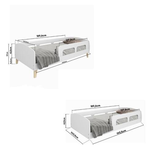 Características: Estrutura em MDP/MDF Estrado de madeira maciça Cantos arredondados Suporta até 120 kg Colchão recomendado: 188 x 88 cm Não acompanha colchão