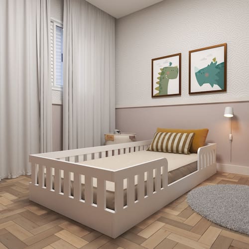 Estilo: Moderno Modular: Não Garantia: 03 Meses Altura (cm): 35 Descrição: Os Móveis devem ser escolhidos com muito carinho, independente de qual for o ambiente, pois eles fazem parte da rotina do dia a dia do nosso lar ou trabalho. Portanto, na hora de decidir qual modelo, lembre-se: além de ter a ergonomia necessária, a medida ideal, um design incrível, eles também devem cumprir suas funções com desempenho total, e na hora da escolha das cores, elas devem combinar com seu estilo e personalidade. Esse Ambiente Infantil possui um design encantador, que permite trazer outros elementos decorativos para compor o ambiente. Acabamento: Melamínico Largura (cm): 195 Possui Baú: Não Possui Pés: Não Tipo de Cama: Montessoriana Possui Portas: Não Possui Gavetas: Não Suporta Até (kg): 80 Profundidade (cm): 95 Tamanho da Cama: Solteiro Tipo de Estrado: Removível Acompanha Dossel: Não Escala de Brilho: Fosco Acompanha Colchão: Não Origem do Produto: Nacional Ambiente Principal: Quarto Infantil Material Principal: MDF/MDP Necessita Montagem: Sim Possui Prateleiras: Não Tamanho do Colchão: Solteiro Material do Estrado: MDP Acompanha Cama Auxiliar: Não Complexidade da Montagem: Média: pode ser montado por mais de uma pessoa e/ou necessite de maior conhecimento para montagem Altura do Estrado até o Chão: 35 Permite a Utilização de Cama Auxiliar: Não Recomendações de Uso, Manutenção e Limpeza: Limpar apenas com pano macio levemente umedecido. Marca: Bramov Móveis Cor do Produto: Branco Itens Inclusos: 1 Cama, Kit Ferragens e Manual de Montagem Sistema de Montagem: Parafusos e minifix Tamanho do Colchão Indicado (L x C): 88 x 188cm