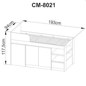 Cama Multifuncioal CM8021, é perfeita para otimizar o seu dormitório já que possui escrivaninha embutida e compartimentos para objetos diversos. Estrutura em MDP de 15mm, acabamento em pintura UV/BP. Equipada com uma mesa lateral retrátil com rodízios para facilitar o manuseio e dois nichos perfeitos para deixar o ambiente mais organizado, armário com 02 portas centrais com dobradiças metálicas, 02 prateleiras e abaixo 01 gaveta com corrediças metálicas, é ideal para colchão solteiro 88x188 cm, para maior possui proteção lateral. Esta cama promove maior espaço ao ambiente e melhor aproveitamento da área, móvel 100%, o que garante a resistência e vitalidade do produto. Este móvel chegará em sua casa separado em 03 volumes.