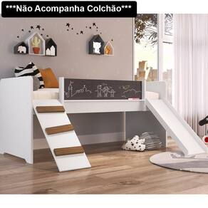 Cama infantil com escorregador possui espaço suficiente na parte inferior para brinquedos, otimizando o cômodo e contribuindo para a organização. Mas o diferencial mesmo é a lousa no centro que acompanha giz! Perfeito para seu pequeno desenhar, escrever e criar as mais divertidas possibilidades. Tudo fabricado em MDP com acabamento em pintura BP de qualidade e design exclusivo.