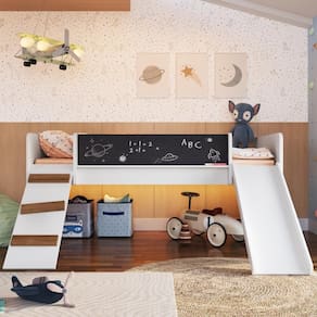 A Cama Infantil Playground para Menino e Menina com Escorregador, Rampa e Lousa da Completa Móveis proporciona uma aventura emocionante sem nem precisar sair do quarto! Seus pequenos terão a oportunidade de explorar e se divertir em um espaço compacto. A cama possui um painel na cor preta, onde as crianças podem soltar a imaginação e desenhar o que quiserem! Acompanha giz colorido para tornar a experiência ainda mais divertida. Como a é prioridade a cama foi projetada com resistência mecânica, garantindo que a brincadeira seja totalmente segura e sem riscos de queda. Garanta já a sua e transforme o quarto das crianças em um verdadeiro parque de diversões!